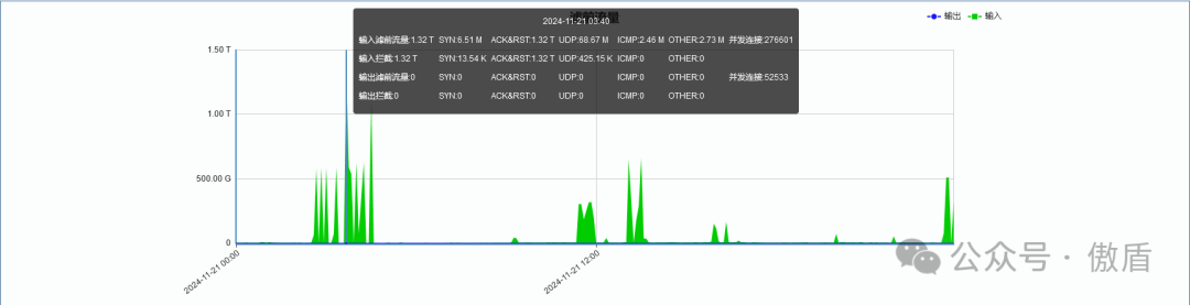 ►单次最大攻击流量1.32T发生于2024-11-21 03:40