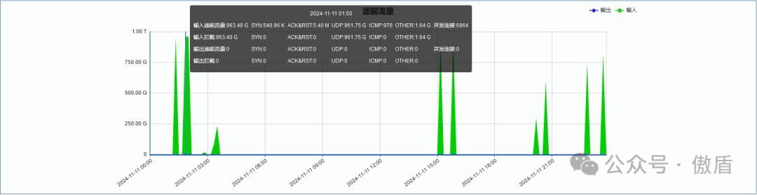 ►单次最大攻击流量 963.4G发生于2024-11-11 01:50