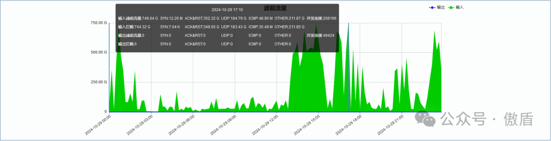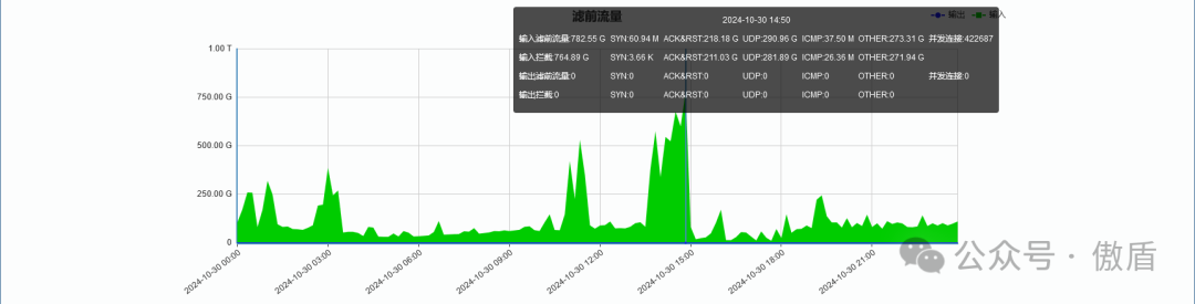 流量监测与防护措施:傲盾系统可以对流量进行实时监测,可以看到服务器实时的流量并且可以看到相关的实时数据,在发现有异常流量后, 系统会自动进行识别并进行拦截,傲盾系统拥有强大的全局监控和防御,可以抵挡众多网络攻击,并不完全依靠人工实时进行处理,并且在系统上拥有多重防御, 对流量进行层层筛选以保证异常流量可以在系统层面直接将其过滤。