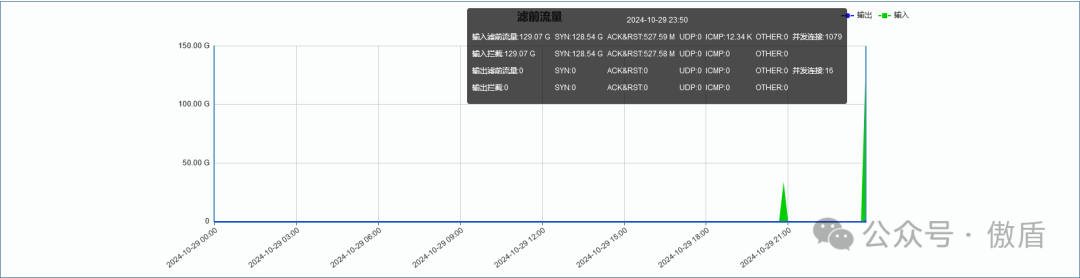 ►单次最大攻击流量 129.07G 发生于 2024-10-29 23:50