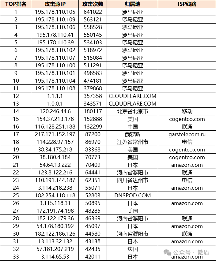 进一步对上述区域攻击数据进行深入分析,归纳整理出以下结论: