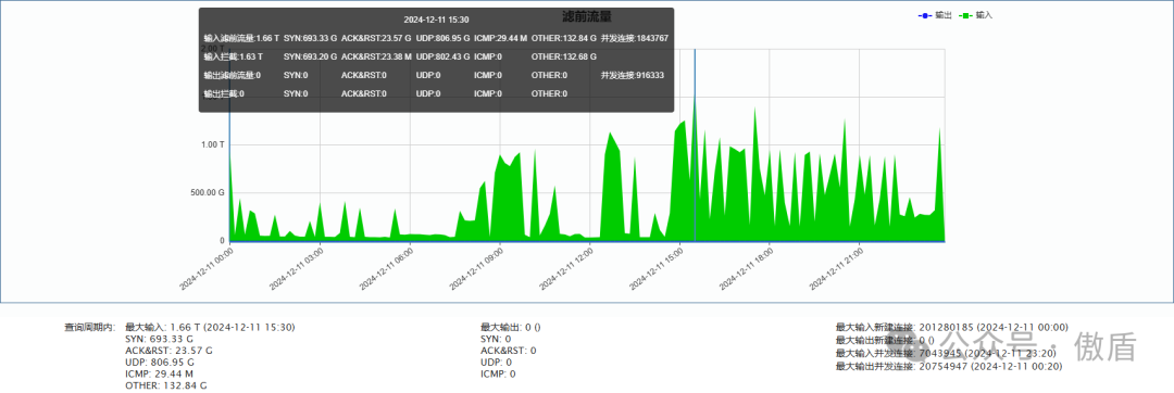 ►单次最大攻击流量1.66 T 发生于 2024-12-11 15:30