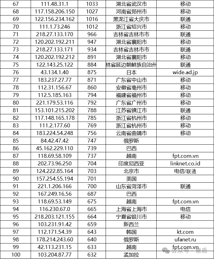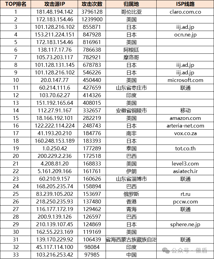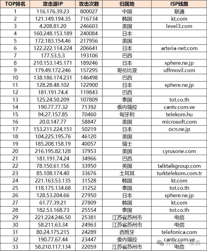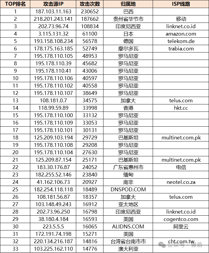 ③攻击源分布: