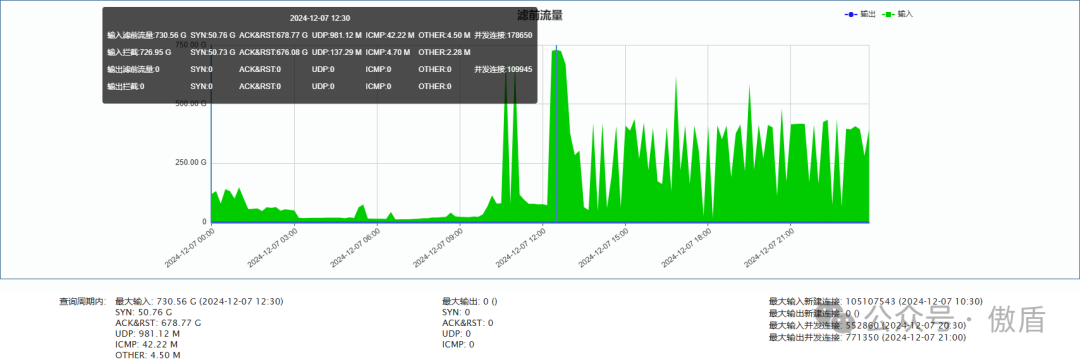 ►单次最大攻击流量-移动方向730.56 G 于2024-12-07 12:30