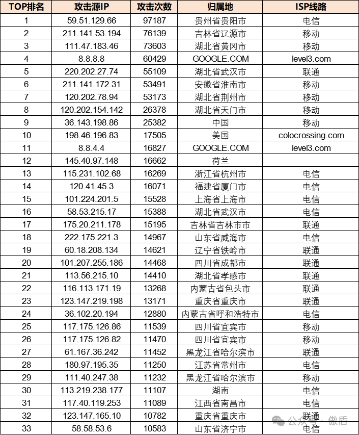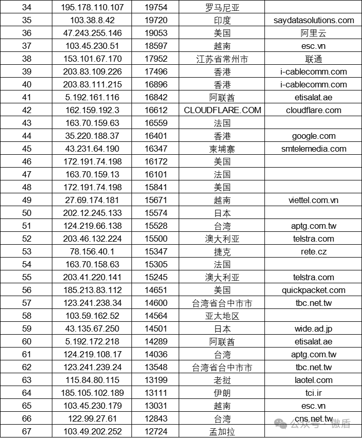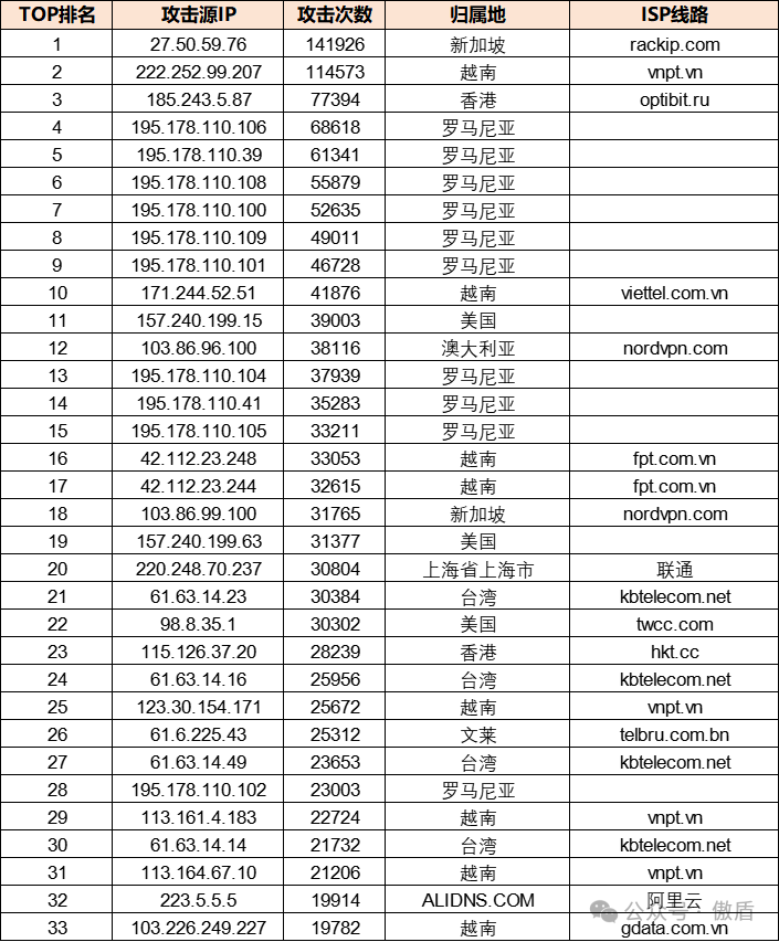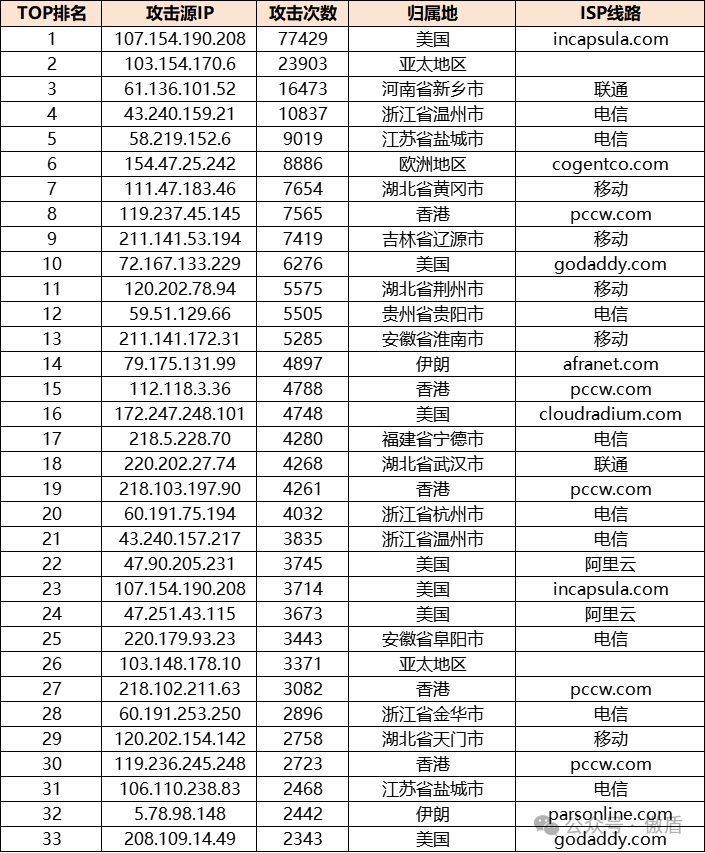 进一步对上述区域攻击数据进行深入分析,归纳整理出以下结论: