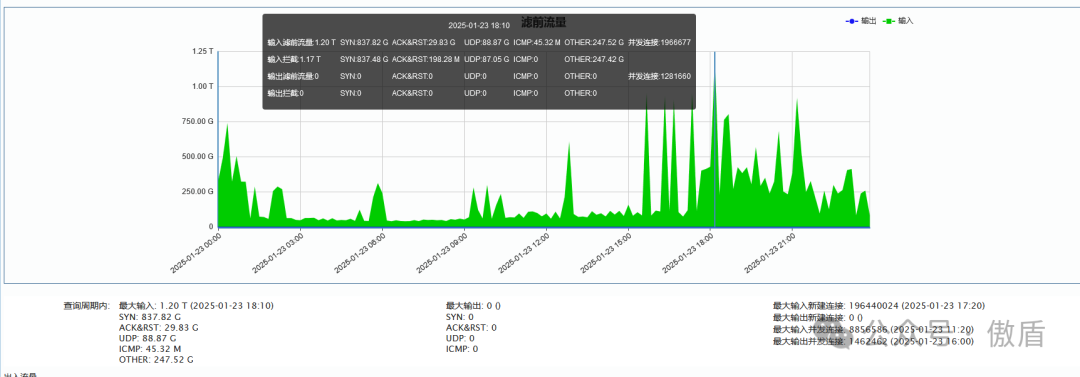 ►单次最大攻击流量1.20T 发生于 2025-01-23 18:10