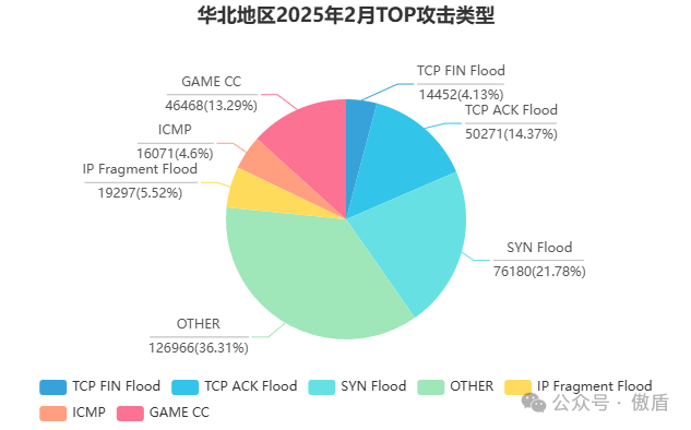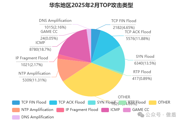 ■ 华东区域:攻击模式更加多元,除传统DDoS外,应用层攻击占比明显增加,说明攻击者在尝试更隐蔽的方式绕过防御机制。