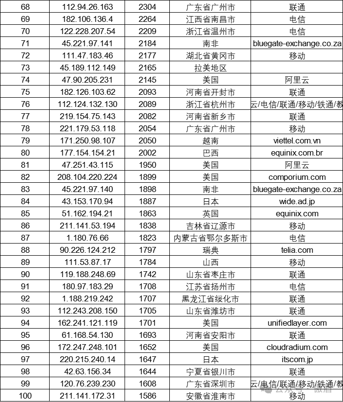 ■ 多点协同趋势明显:攻击来源分布广泛,涉及全球多个国家和地区,攻击IP呈现更加分散的特点,增加了溯源和防御的难度。