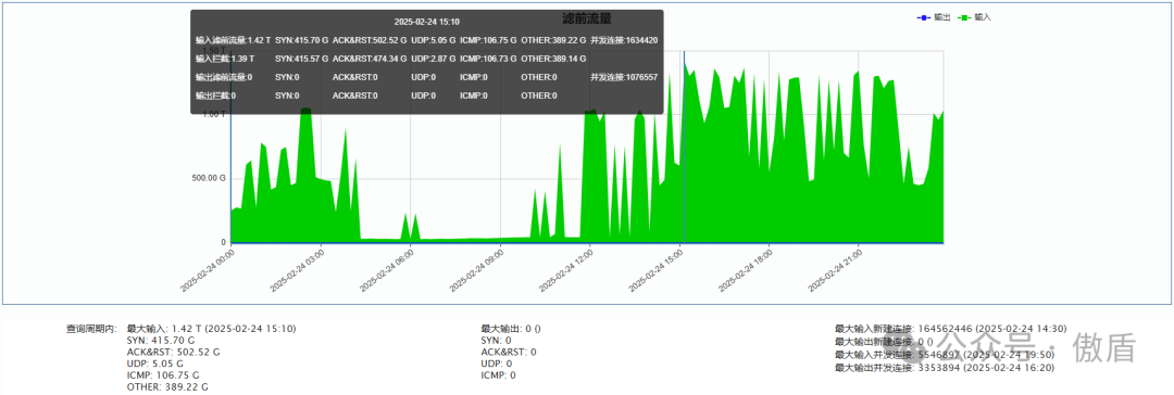 ►单次最大攻击流量1.42 T 发生于 2025-02-24 15:10