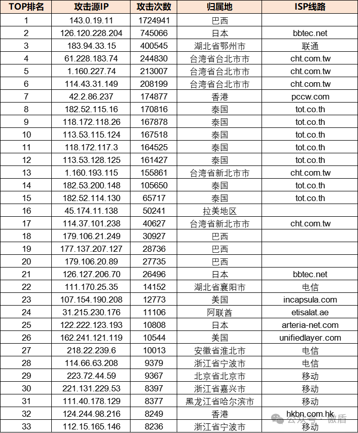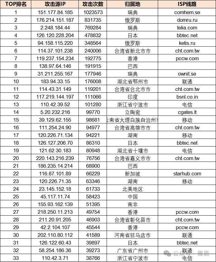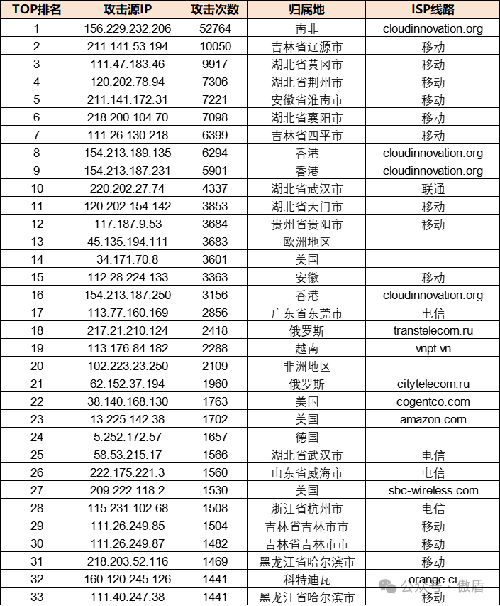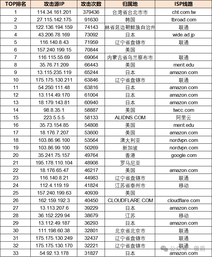 ③攻击源分布: