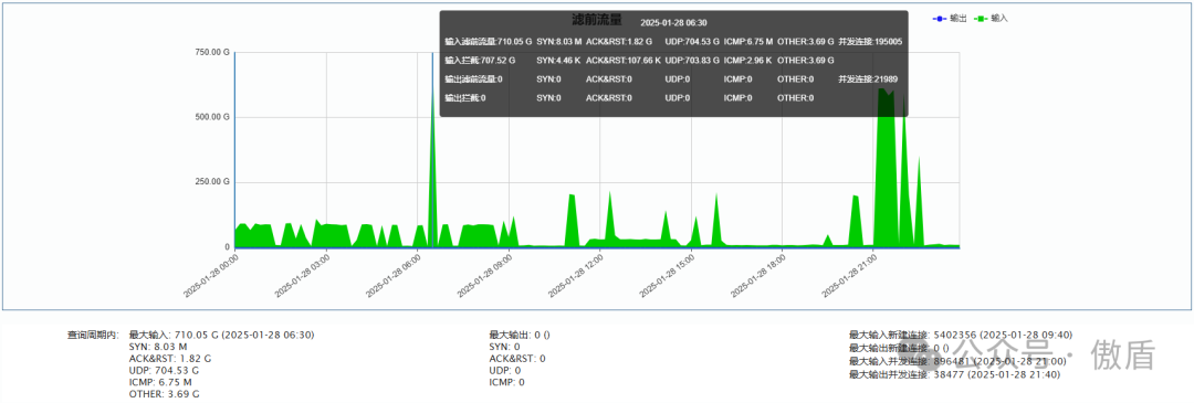 ►移动方向:单次最大攻击流量 710.05 G 于2025-01-28 06:30