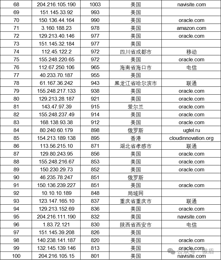 进一步对上述区域攻击数据进行深入分析,归纳整理出以下结论: