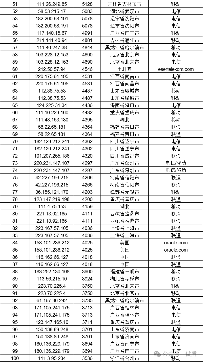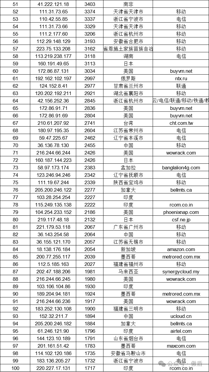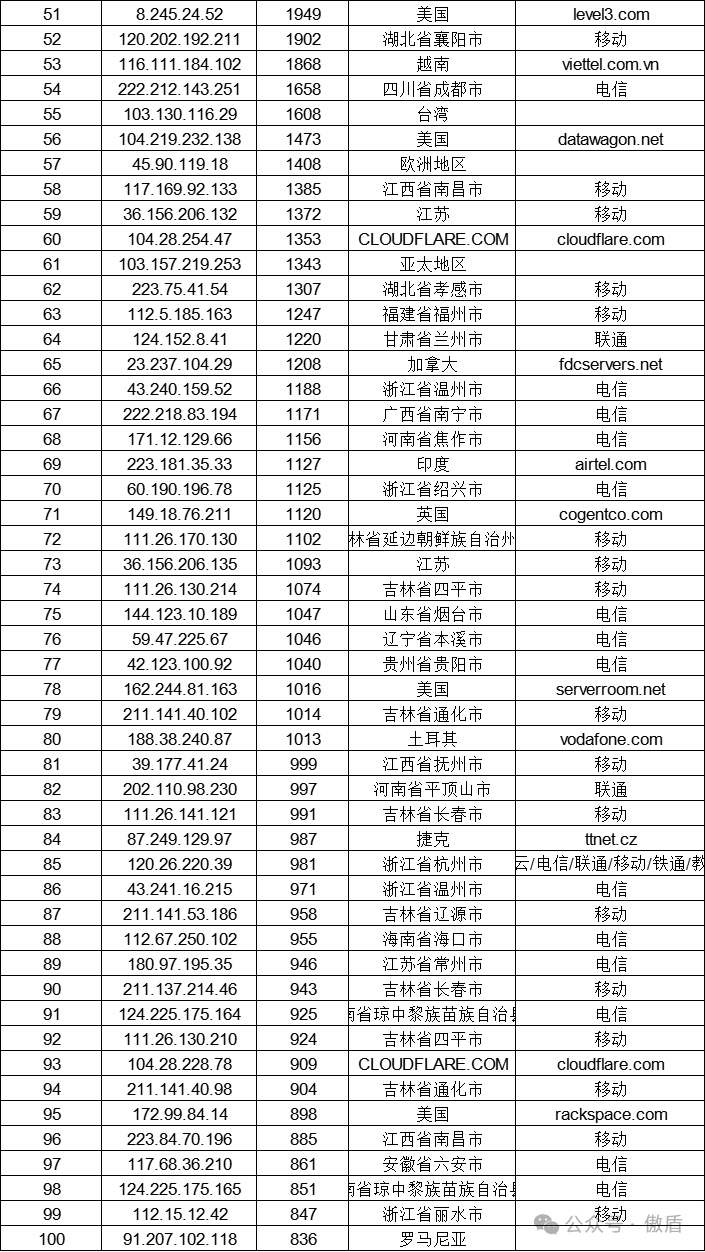 注:因IP地理位置库时效性原因属地与ISP线路仅供参考,另因DDoS攻击存在虚假源的可能,如引用下方攻击源数据至网络安全设备中,由此产生的风险与傲盾软件无关。