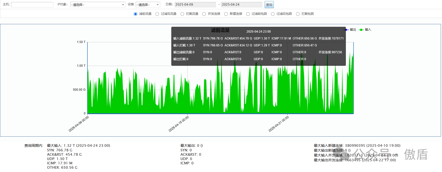 ►单次最大攻击流量1.32 T 发生于 2025-04-24 23:00
