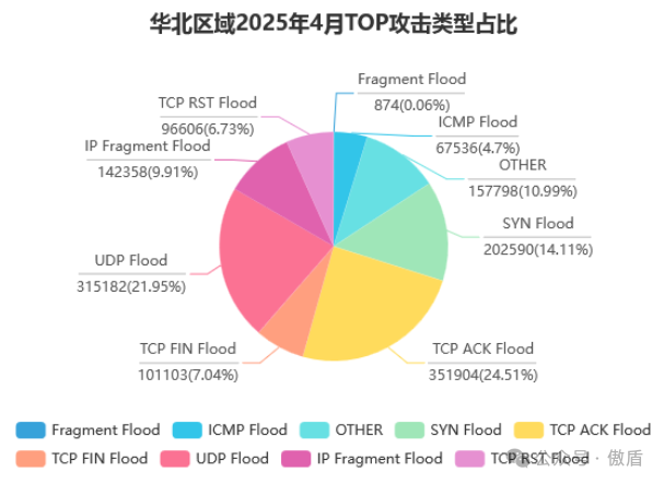 攻击方式以传统UDP Flood、TCP SYN Flood、ACK Flood为主,伴随一定比例的应用层攻击(如HTTP Flood、Slow Attack等)。值得注意的是, 出现了部分“低速率慢速攻击”与“脉冲式攻击”结合的新型手法,具有更强的隐蔽性和对防御系统资源的持续消耗特性。