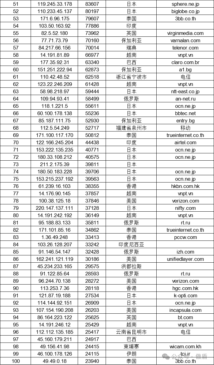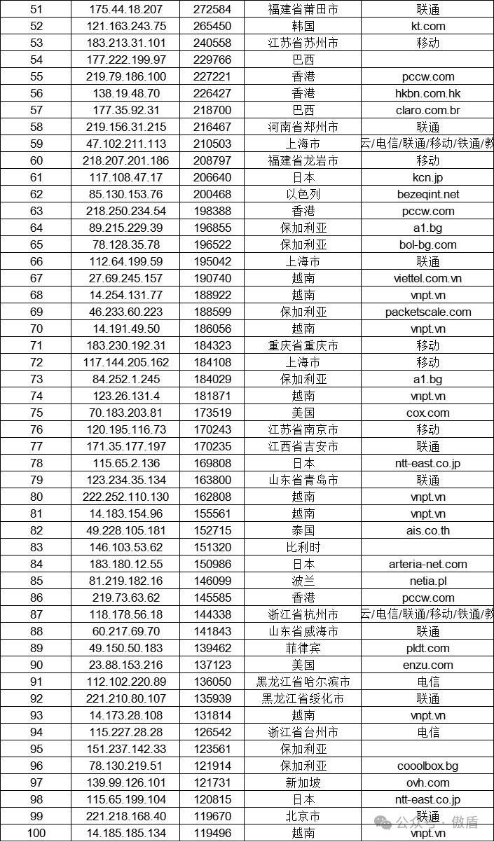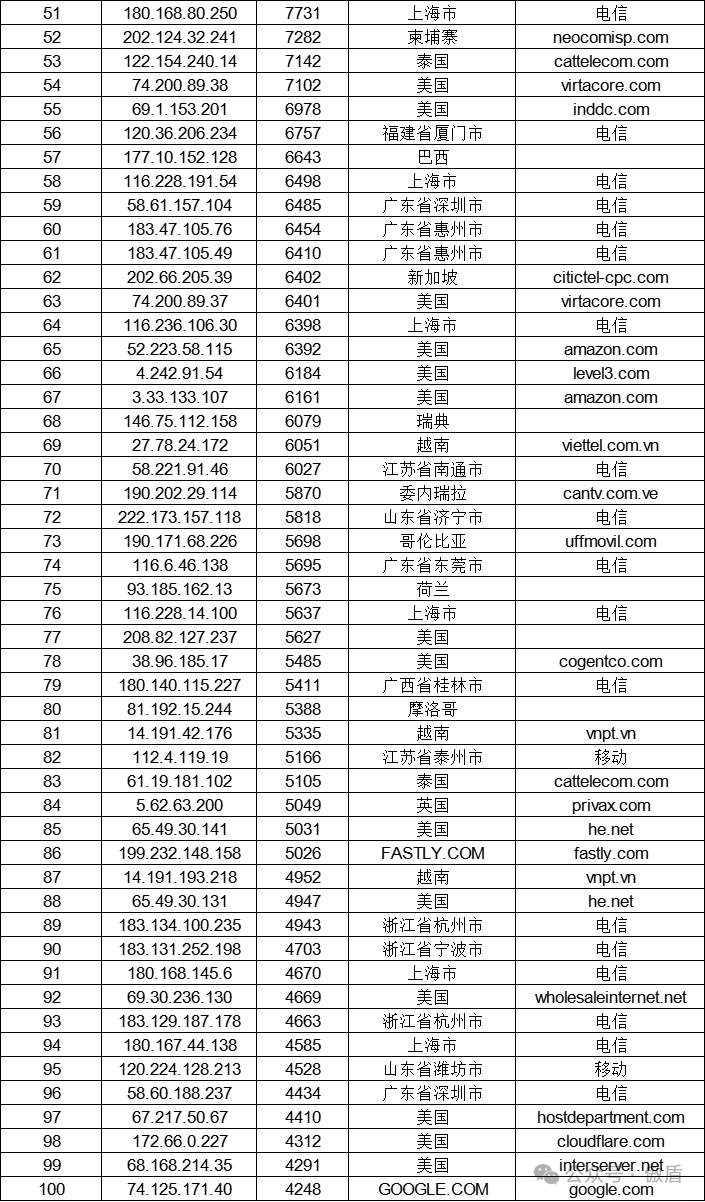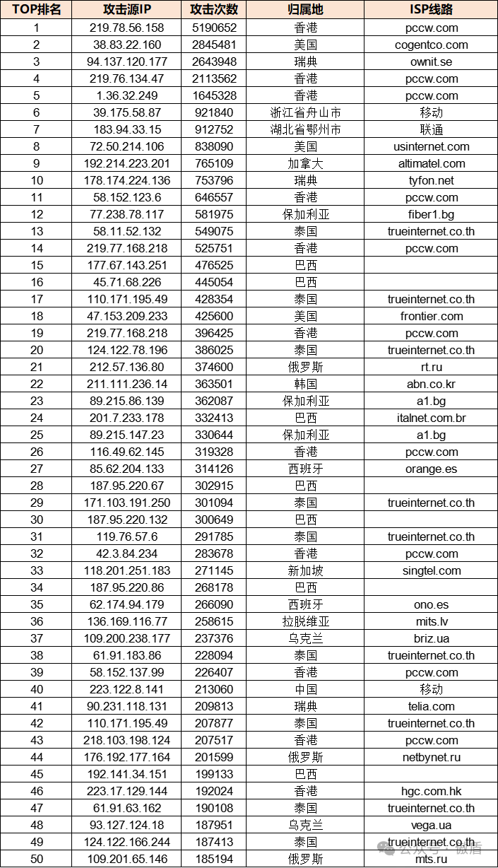 免责声明:因 IP 地理位置数据库存在更新延迟,报告中显示的属地和运营商信息仅供参考。鉴于 DDoS 攻击流量中可能存在虚假源 IP, 如您将下列攻击源信息应用于网络安全设备策略,由此产生的误判或误拦后果,傲盾软件概不承担相关责任。