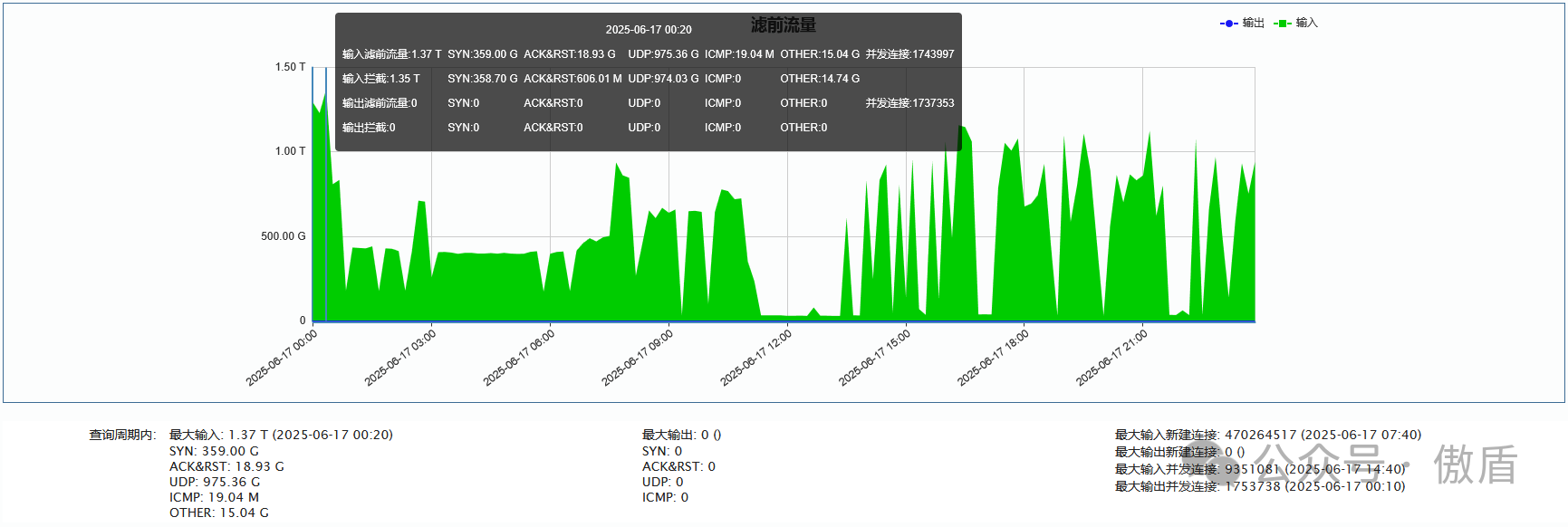 ►单次最大攻击流量1.37 T 发生于 2025-06-17 00:20