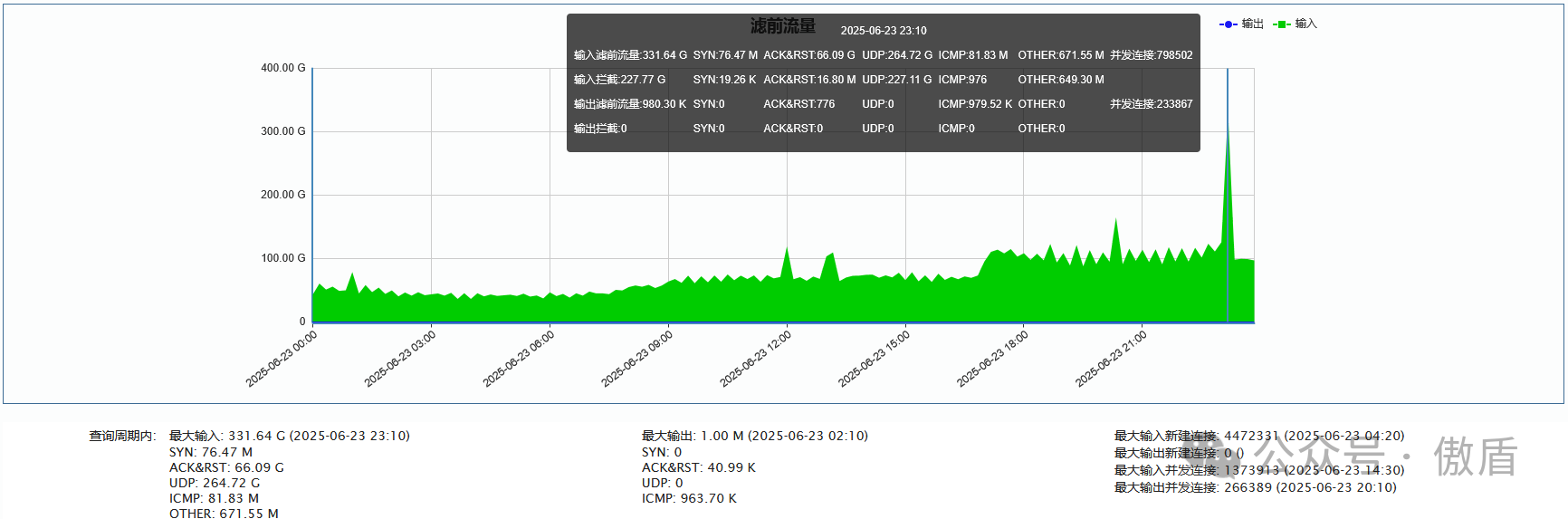►联通方向:单次最大攻击流量 331.64 G 于2025-06-23 23:10