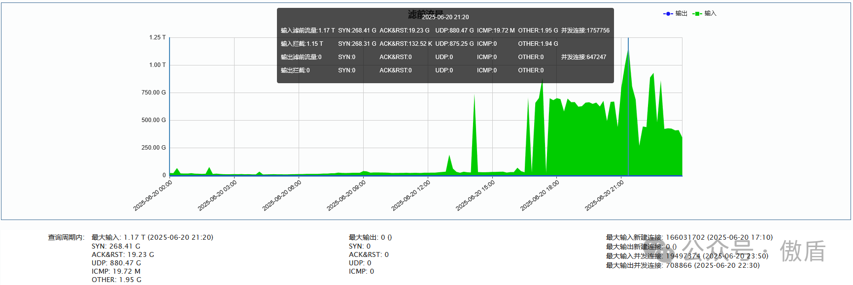 ►电信方向:单次最大攻击流量 1.17 T 于2025-06-20 21:20