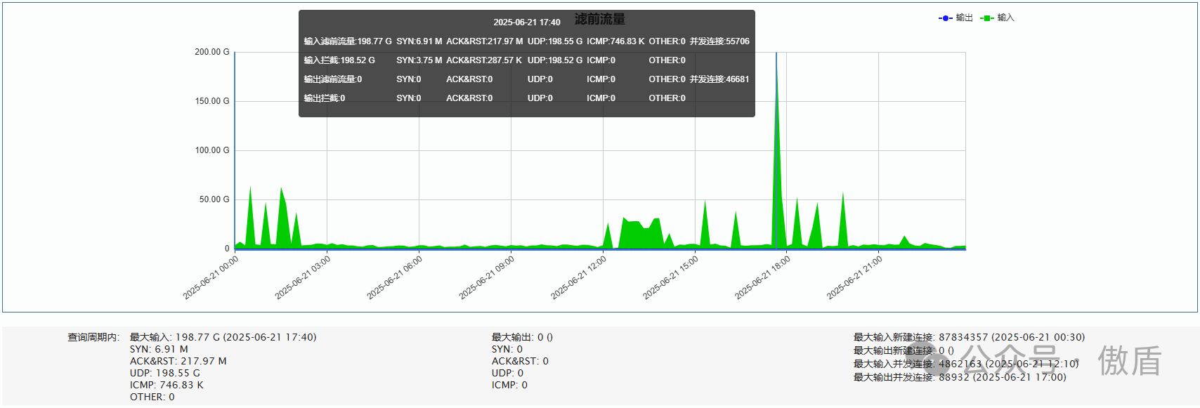 ►单次最大攻击流量 198.77 G 发生于 2025-06-21 17:40