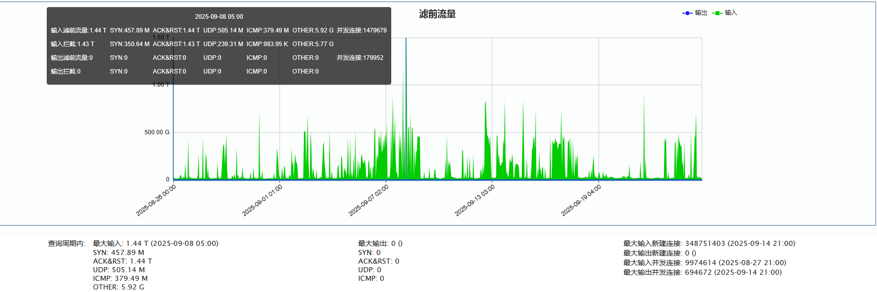 ►单次最大攻击流量 1.44 Tbps(发生于 2025-09-05 05:50至06:00时段)