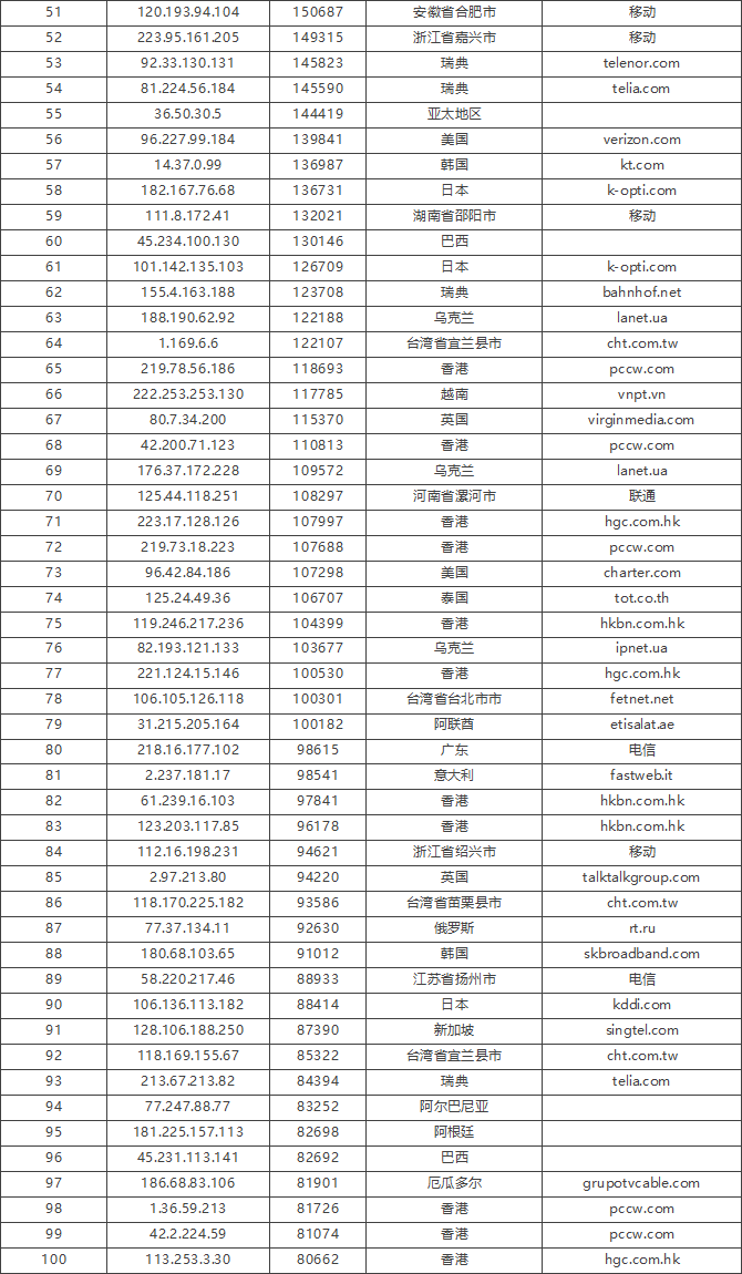 ③攻击源分布事项:
