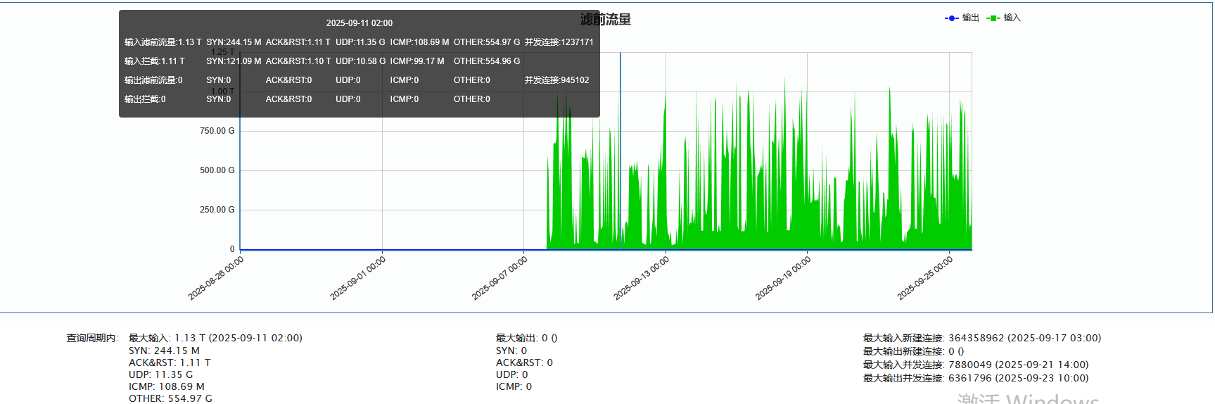 ►单次最大攻击流量1.13 Tbps(发生于 2025-09-11 02:50至03:00时段)