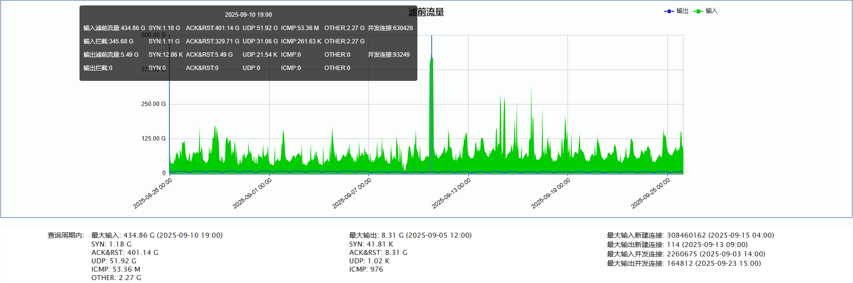 ►电信方向:单次最大攻击流量为434.86 Gbps(发生于2025-09-10 19:10至19:20时段)
