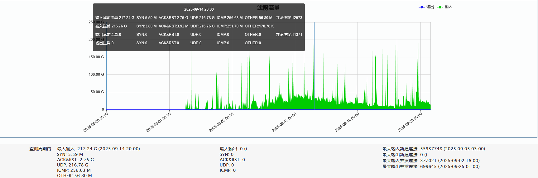 ►单次最大攻击流量 217.24 Gbps (发生于 2025-09-14 20:50至21:00时段)