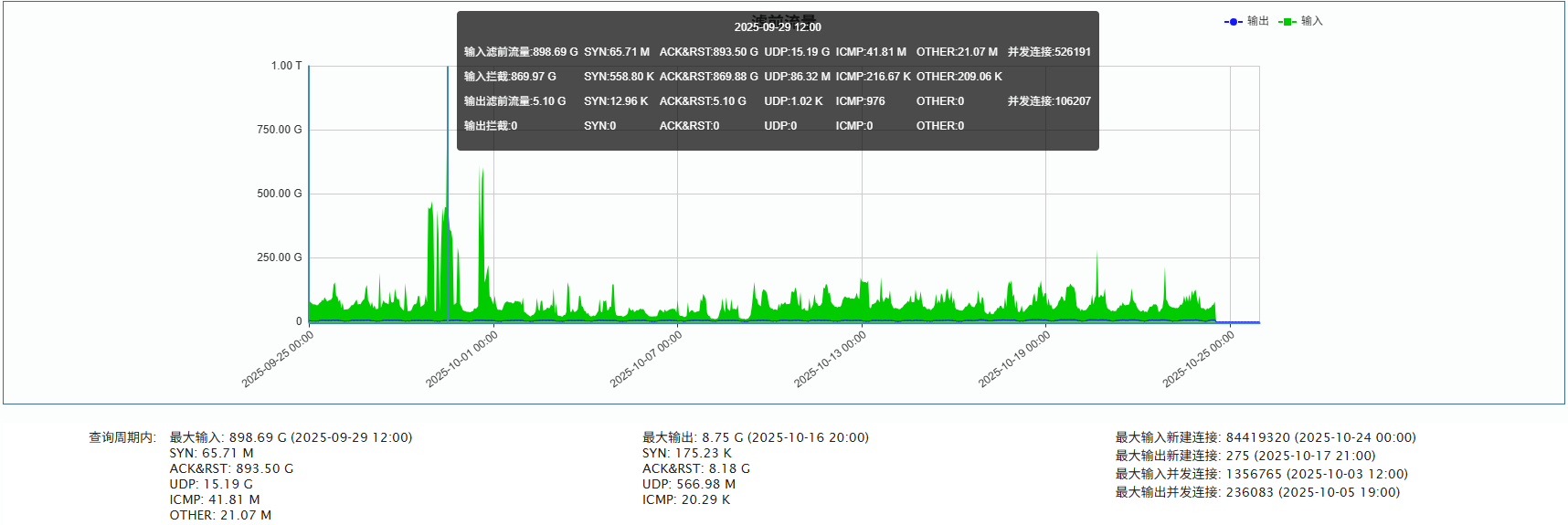 ►电信方向:单次最大攻击流量898.69Gbps(发生于2025-09-29 11:50至12:00时段)