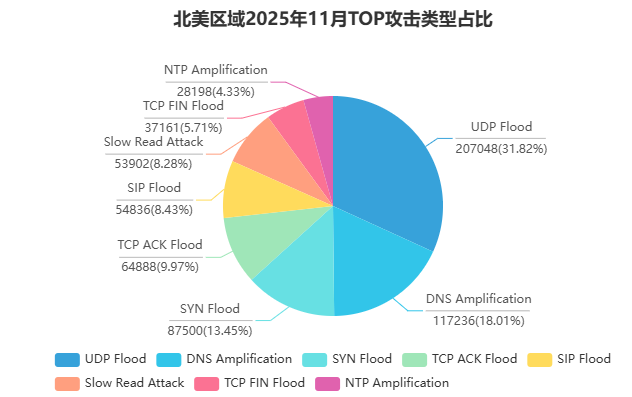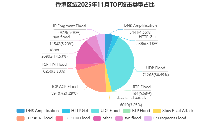 本月,华东、华中、华北、香港、北美等重点区域均出现大量攻击行为,其中不乏规模超过百Gbps 乃至 Tb 级的高强度攻击。攻击类型覆盖 SYN Flood、UDP Flood、ACK&RST Flood、ICMP Flood 等多种主流方式,部分区域攻击持续时间显著拉长,呈现出明显的混合型、多阶段化特征。