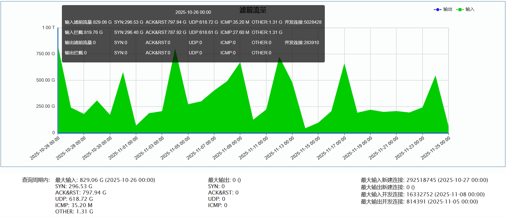 ►单次最大攻击流量 1.27 Tbps(发生于 2025-11-16 03:50至03:00时段)