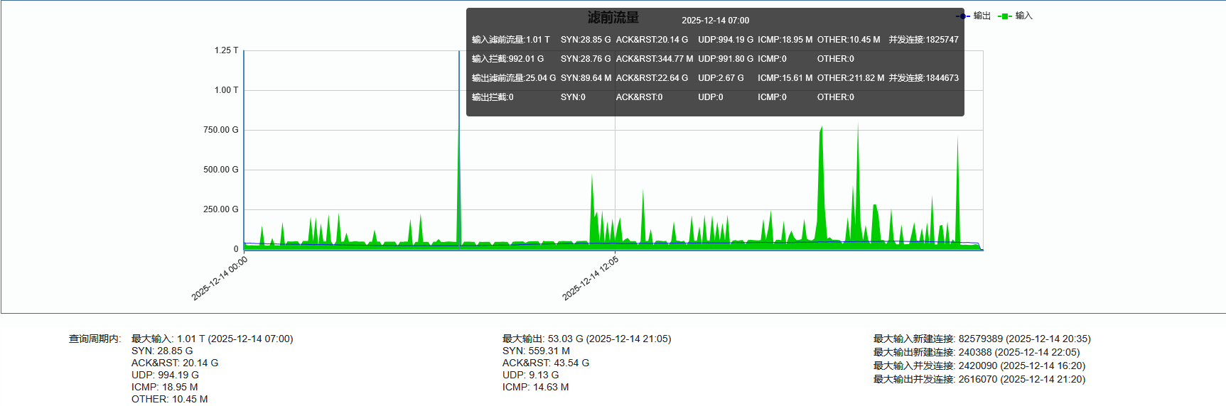 ►单次最大攻击流量 1.01 Tbps(发生于 2025-12-14 07:00至07:05时段)