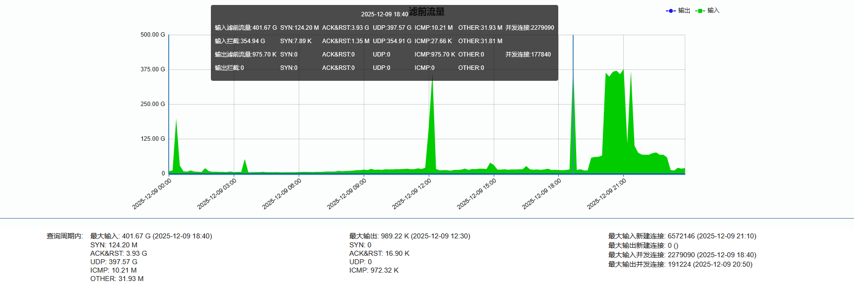 ►联通方向:单次最大攻击流量为401.67 Gbps(发生于2025-12-09 18:40至18:50时段)