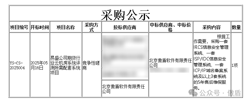 易盛公司(郑州易盛信息技术有限公司)作为期货行业重要的技术支撑机构,其云机房系统评测是保障期货交易安全、稳定、高效运行的关键环节。 本次采购的配套系统,包括IRCS信息安全管理系统、ISP/IDC信息安全管理系统与ICP/IP/域名备案系统及售后维保,均为软硬件一体机,要求供应商具备强大的技术整合 能力和可靠的安全保障水平。