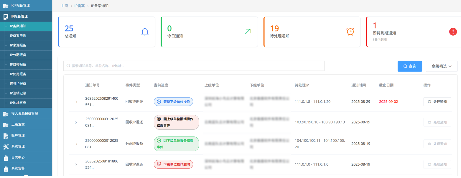 为帮助广大接入服务商顺利适应IP地址备案新机制,避免因系统不兼容影响业务开展,我司已正式推出全新IP地址备案管理系统,全面适配单向报备新规范。