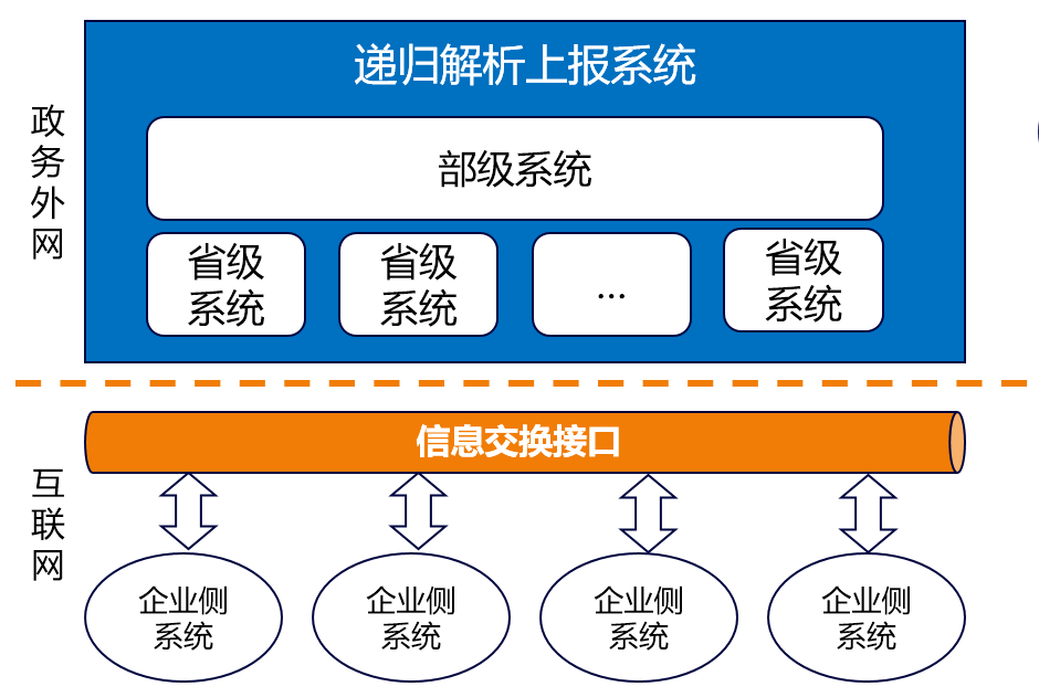 递归解析上报系统基于IP地址备案系统整体架构,新增上报数据节点,企业按照接口标准完成上报功能建设后,即可开展业务上报业务。