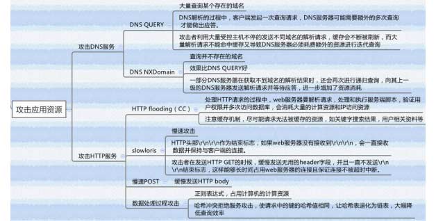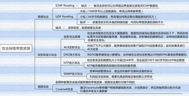 按照攻击对象的不同,将攻击原理和攻击危害的分析分成3类,分别是攻击网络带宽资源、应用以及系统。