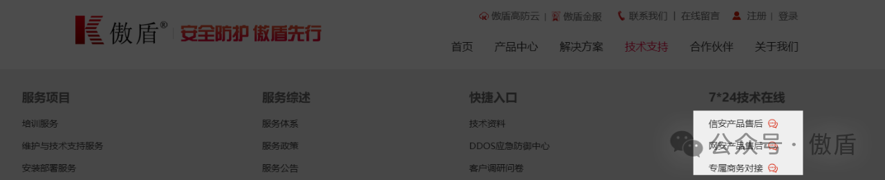 方式三:通过微信公众号搜索【傲盾】,选择对应售后【 技术支持】;